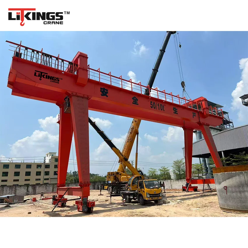 MGE Double Trolley Double Beam Gantry Crane New Type Heavy Duty 50 Ton Overhead Crane Motor Gear ISO9001 Certified Customization